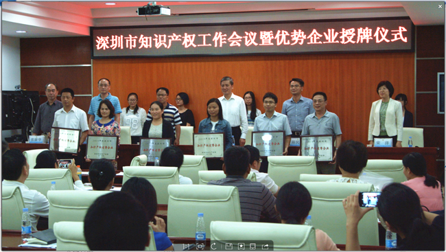 此次參會(huì)領(lǐng)導(dǎo)有深圳市市場監(jiān)督委員會(huì)常務(wù)副主任范鳴春、深圳市知識(shí)產(chǎn)權(quán)局副局長秦世杰、深圳市知識(shí)產(chǎn)權(quán)局知識(shí)產(chǎn)權(quán)促進(jìn)處處長陳民鋼、副處長宋洋等。會(huì)議內(nèi)容包括2014年度知識(shí)產(chǎn)權(quán)優(yōu)勢企業(yè)授牌儀式、最新知識(shí)產(chǎn)權(quán)政策宣貫以及知識(shí)產(chǎn)權(quán)促進(jìn)工作部署等。會(huì)上,范主任做了重要講話,充分肯定了深圳市知識(shí)產(chǎn)權(quán)工作在過去30年取得的矚目成績,2014年專利申請量連續(xù)四年全國第一,PCT申請量占全國一半;發(fā)明專利擁有量75件/萬人,是全國平均水平的15倍以上;90%以上的研發(fā)機(jī)構(gòu)、研發(fā)人員、研發(fā)投入、研發(fā)成果均來自企業(yè)。未來“十三五”規(guī)劃中,深圳市將在知識(shí)產(chǎn)權(quán)保護(hù)、運(yùn)營以及人才培養(yǎng)方面繼續(xù)推出新政策,將深圳打造為國際型創(chuàng)新城市“中國硅谷”。同時(shí)也指出了深圳市知識(shí)產(chǎn)權(quán)工作的不足:知識(shí)產(chǎn)權(quán)分布結(jié)構(gòu)不均衡,與發(fā)達(dá)國家發(fā)達(dá)城市依然存在差距等。