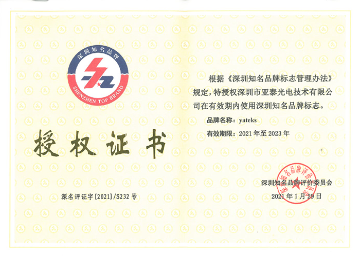 隨后,羅琪琳部長將標志著中國優質品牌符號的“深圳知名品牌”證書及牌匾交到了市場相關負責人手上,這份承載著評委會對亞泰光電產品和服務質量水平充分肯定,與社會公眾對于亞泰光電品牌發展認可和期許的榮譽,將更加促進亞泰光電的發展進程和管理水平上升到更高、更新的臺階。