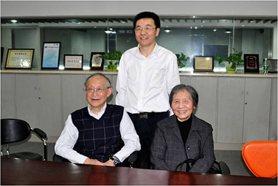 圖為楊叔子夫婦蒞臨亞泰光電與鄭總合影