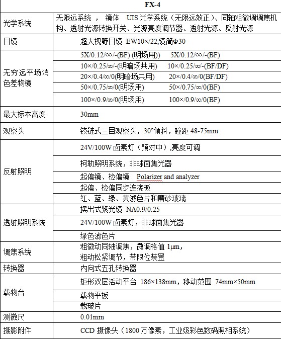 分析鐵譜顯微鏡技術參數:
