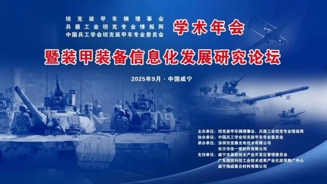 由坦克裝甲車輛理事會(huì)、兵器工業(yè)坦克專業(yè)情報(bào)網(wǎng)主辦,深圳市亞泰光電技術(shù)有限公司承辦的"2025年坦克裝甲車輛學(xué)術(shù)年會(huì)暨裝甲裝備信息化發(fā)展研究論壇"將于9月17日至19日在湖北咸寧華信大酒店隆重舉行。