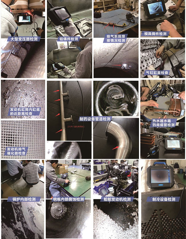 適用于各種狹小空間的目視檢測工作,比如汽車發動機缸、管道、鑄件、容器內部的異物、磨損檢查等;可廣泛應用于發動機、電力、石化、鐵路、船舶、研究等領域!